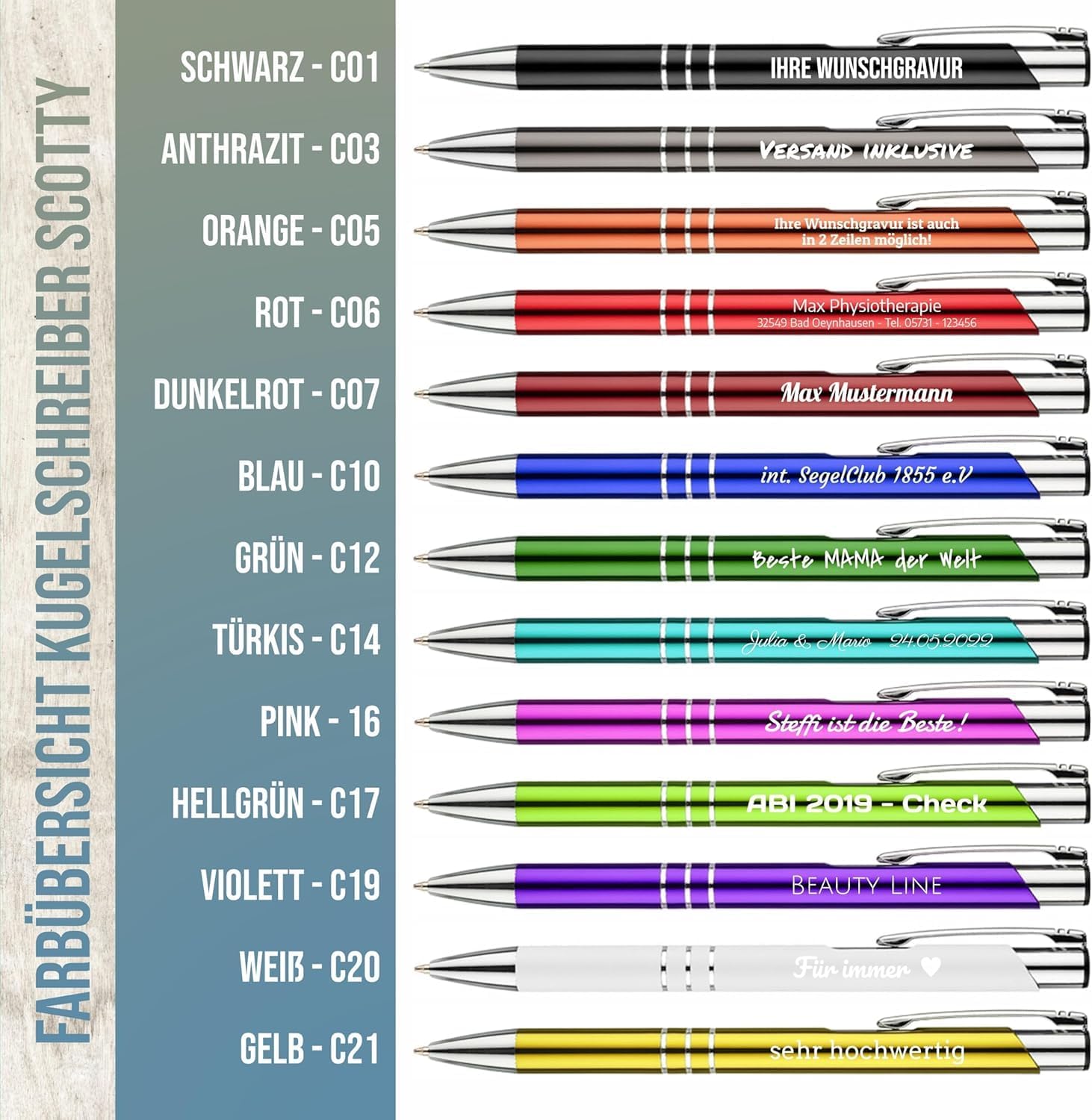 - WERBEARTIKEL - Unsere personalisierte Kugelschreiber mit Gravur eignen sich optimal als Werbekugelschreiber für Firmen & Organisationen oder als Geschenk mit einzigartiger Namensgravur.